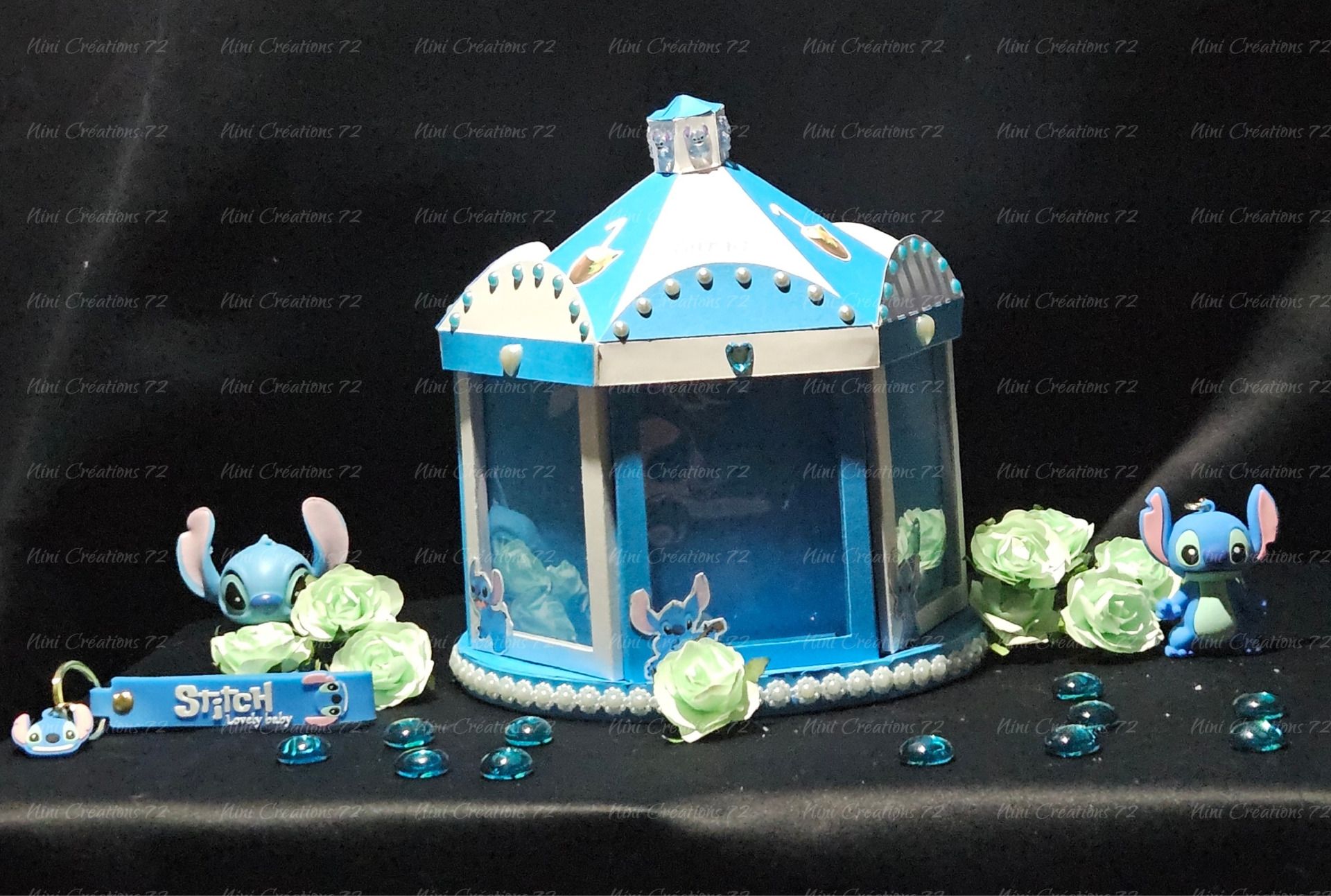 Jolie carrousel Stitch avec un emplacement de rangement, contient 6 espaces photos.